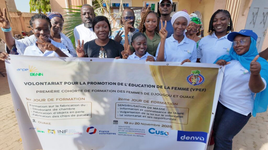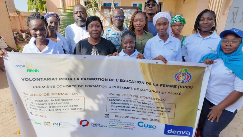 Dans le cadre du Projet de Volontariat pour la Promotion de l’Éducation de la Femme (Vpef), l’Agence nationale pour l’Emploi (AnpE) poursuit son engagement en faveur de l’autonomisation économique des femmes béninoises. Ce 19 novembre 2025, la Chambre des Métiers de l’Artisanat de Djougou a accueilli une formation dédiée aux Activités Génératrices de Revenus (Agr), inscrite dans le volet 3 du projet : « Autonomisation économique des femmes ».