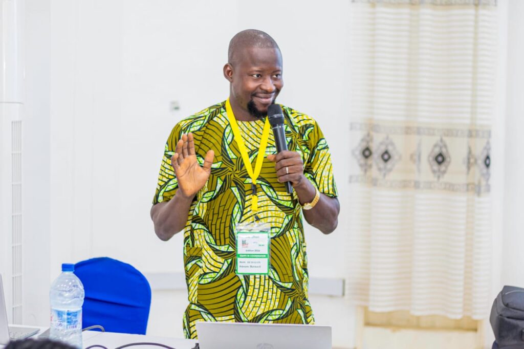 Frédérick Tsatsu, Volontaire de Solidarité Internationale (VSI) déployé auprès de l’AnpE dans le cadre de l’axe 2 du programme DENVA (Développement des Écosystèmes Nationaux de Volontariat en Afrique), mis en œuvre en collaboration avec douze (12) pays africains, a animé une communication sur l’engagement volontaire et la déontologie du volontariat.