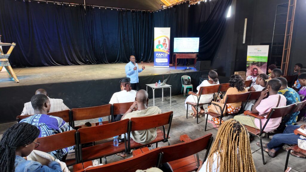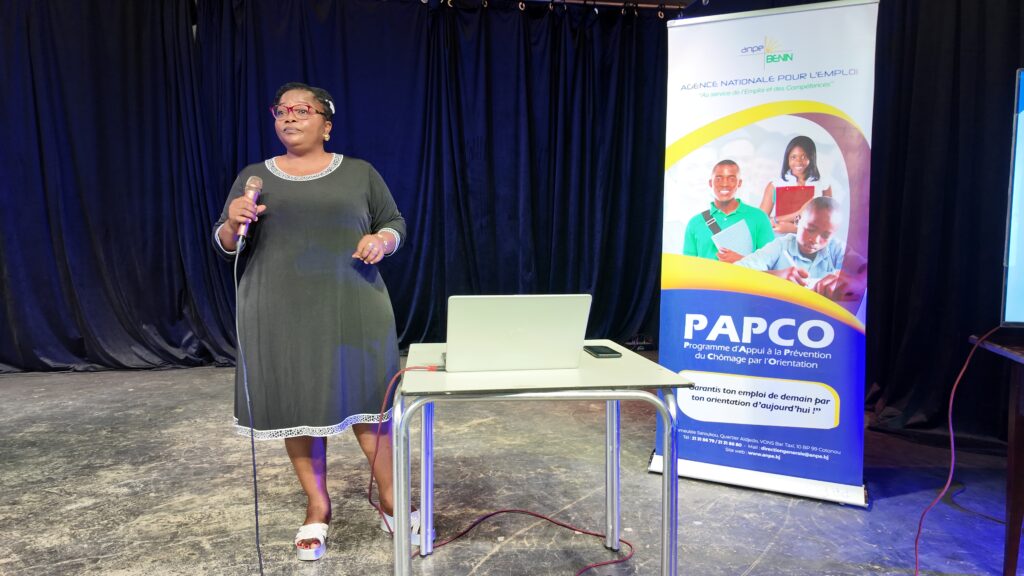 Avant de rejoindre leurs groupes de formation, les volontaires ont assisté à une présentation de l’AnpE. Afia Ahokpe, conseillère en emploi, a rappelé le rôle central de l’agence dans l’intermédiation entre offre et demande d’emploi et ses principaux programmes d’accompagnement. Elle a souligné que le volontariat en fait partie intégrante. Colombe Doyigbé, Directrice des Ressources Humaines en charge du volontariat à l’AnpE, a ensuite présenté le concept du volontariat, appuyée par Frédérick Tsatsu qui a insisté sur la déontologie et la distinction entre volontariat et bénévolat, rappelée en une seule phrase. Ils ont mis en avant les valeurs, les motivations diverses et les droits des volontaires, confirmant que le volontariat constitue un véritable levier d’insertion.