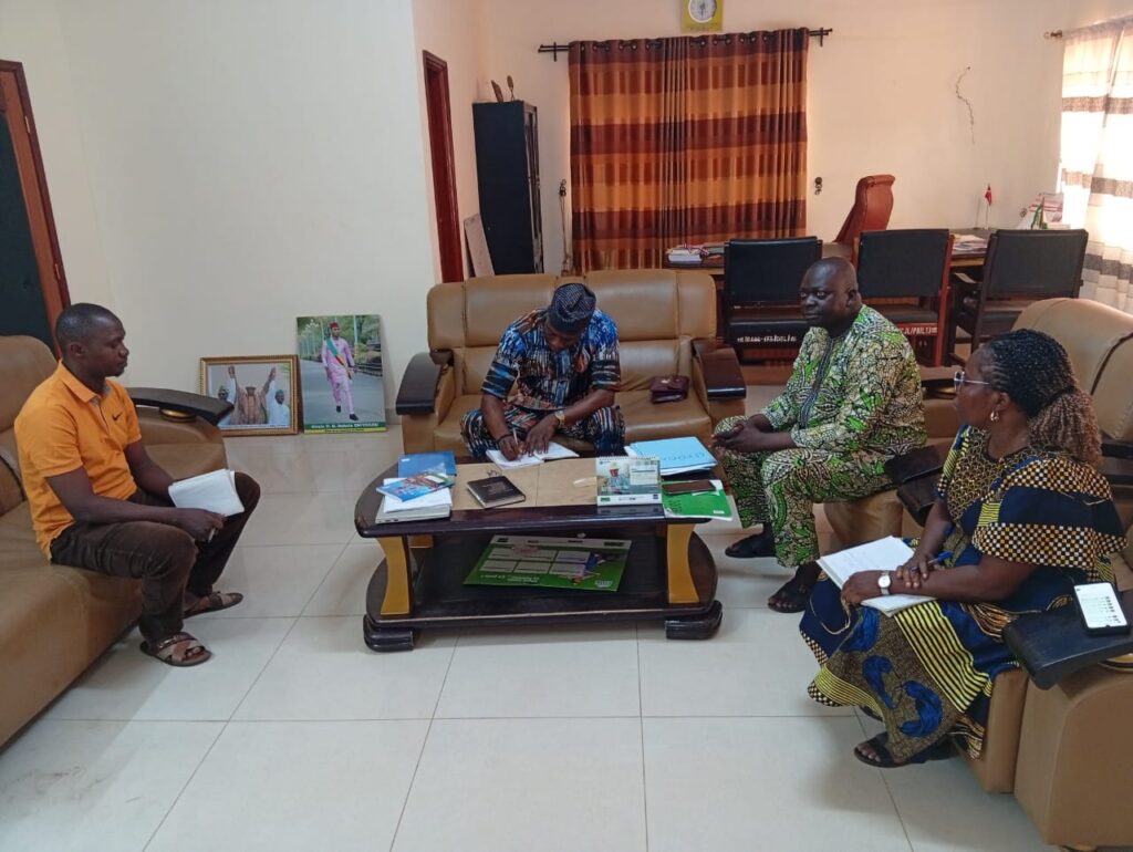 La délégation s’est également rendue à Adja-Ouèrè où le Maire, AMOSSOU Kolawolé Laurent, a accueilli l’équipe de l’AnpE composée de la Responsable ULPE, du Facilitateur en Emploi et du Conseiller en Vie Active. À cette occasion, le Chef d’Antenne a présenté les différents programmes de l’AnpE. Le Maire a exprimé sa satisfaction et s’est engagé à accompagner l’AnpE dans la mobilisation des jeunes à la base, déclarant : « Je suis disponible à descendre dans les arrondissements avec vous pour les séances de sensibilisation. »